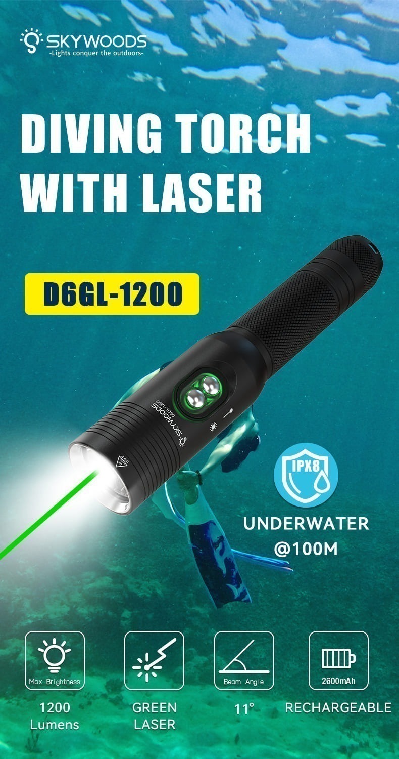 ·Vivid green laser colour for high visibility even on the seabed. It can be used to guide diving companions, communicate information, provide diving instruction, perform underwater searches, retrieve underwater information, etc.