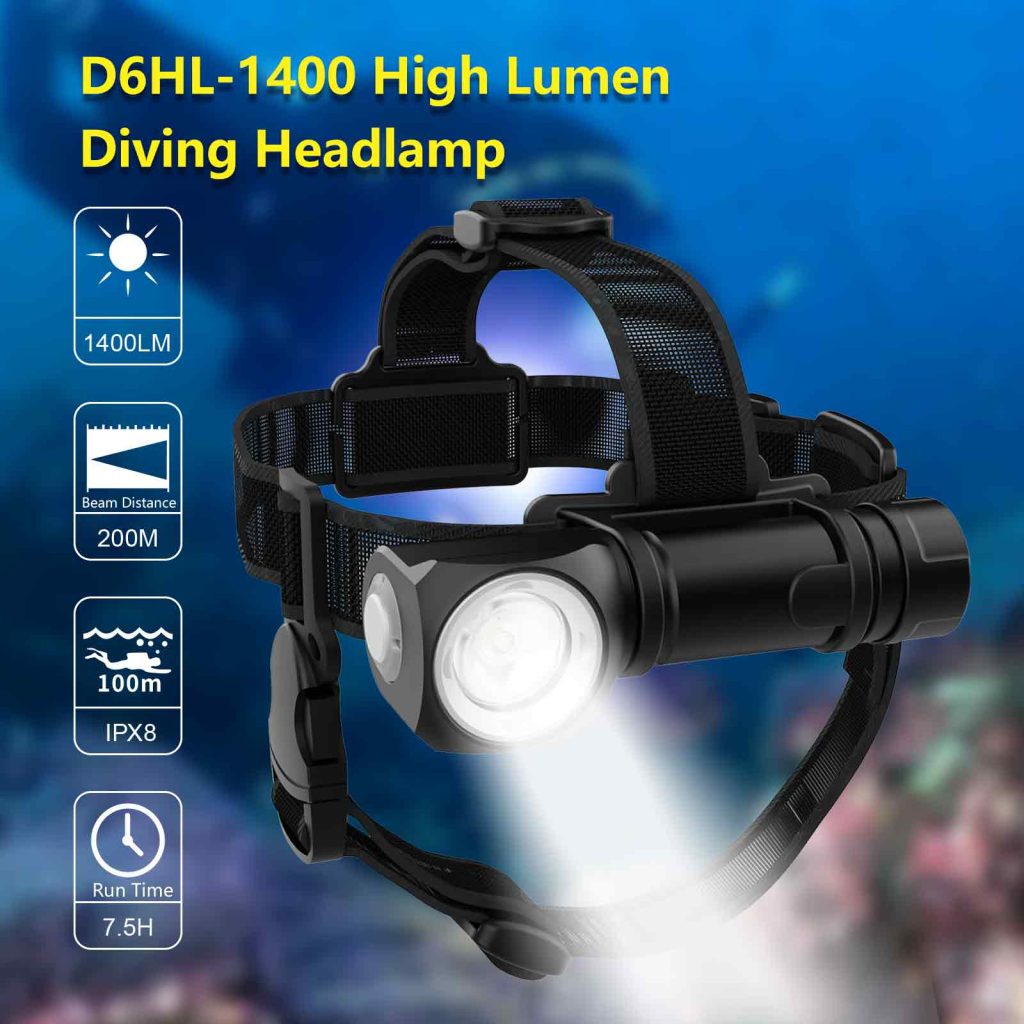 ·The hands-free portable diving headlamp with 1*SST40 lamp beads can produce up to 1400 lumens