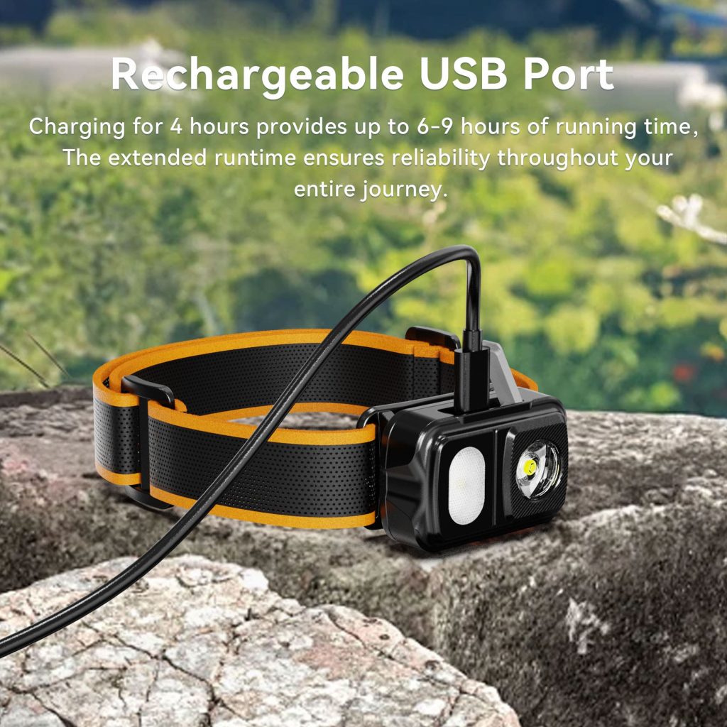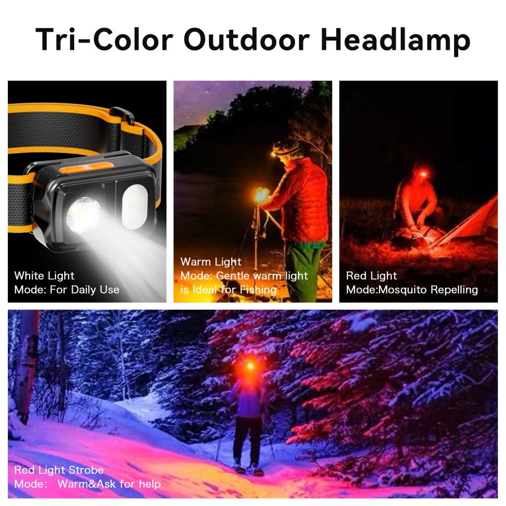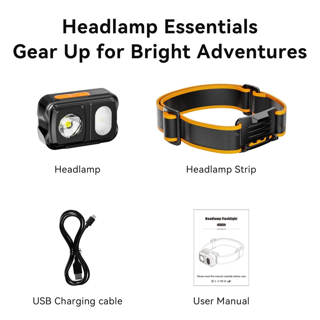(1)Lighting Modes: Designed with multiple lighting modes—Low, Medium, and High. A long press of the button activates the warm light mode which offers two levels: High and Low as well as the Despite its compact body, this headlamp delivers a maximum brightness of up to 500 lumens.