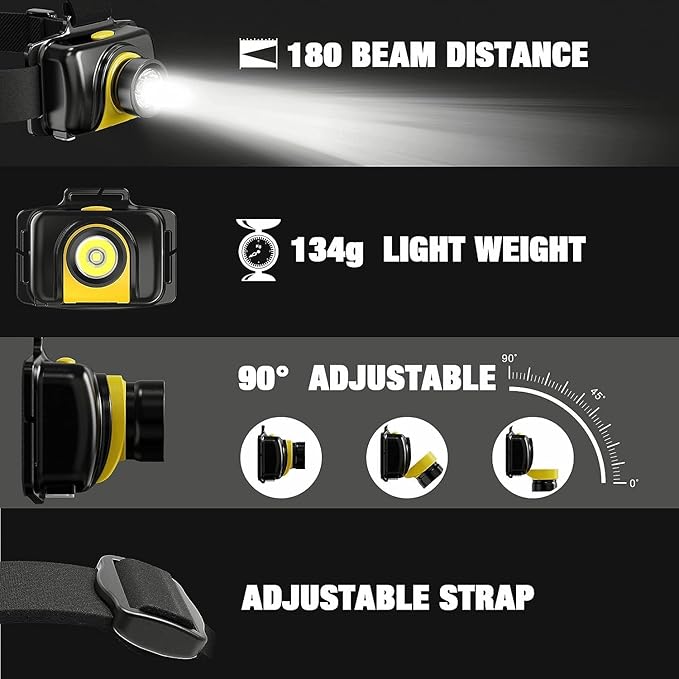 1) Brightness: Up to 570 lumens when it’s on white high mode, the beam distance is 190m.