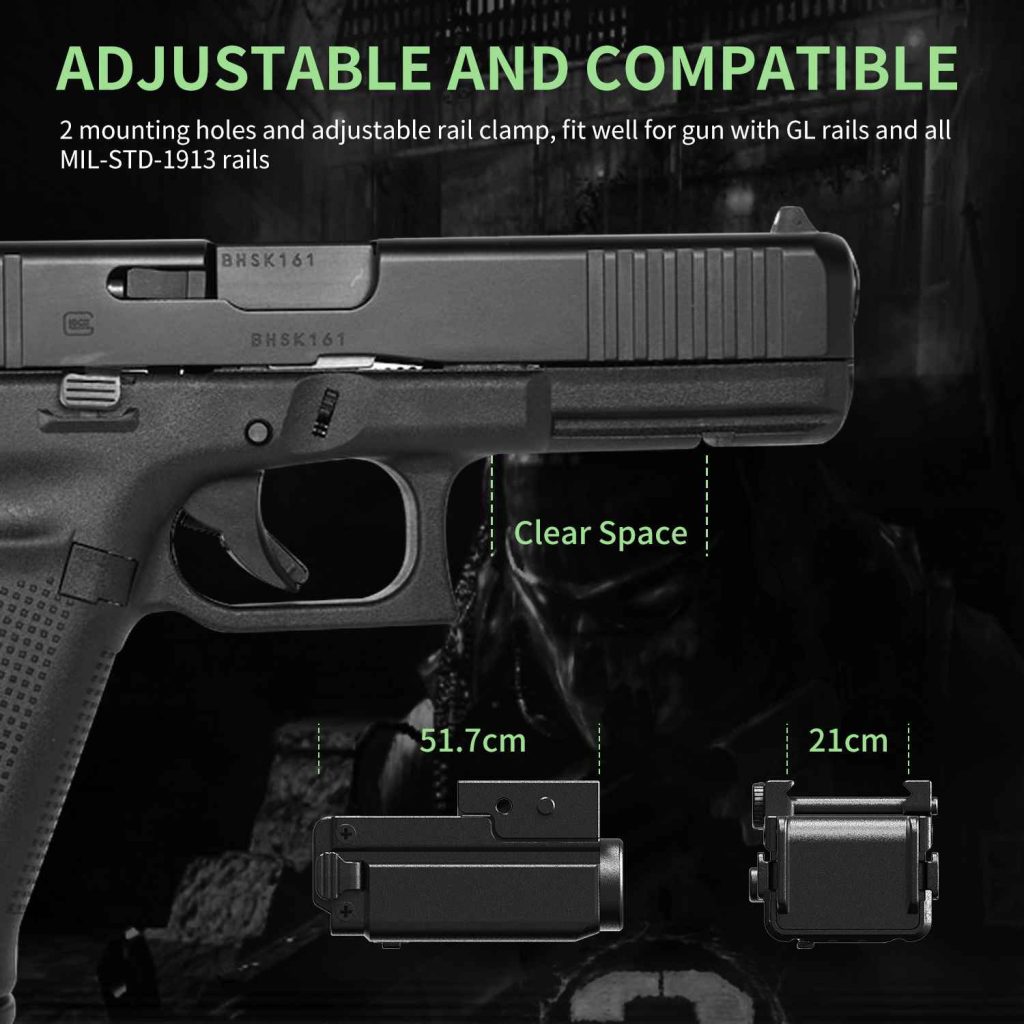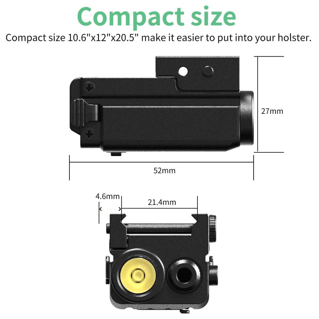 7) The ultra-small size of 27*52*30.4 mm allows the pistol with this tactical light to fit into the holster very smoothly