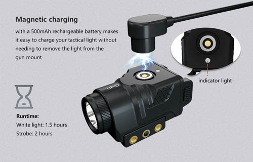 3) The built-in 500mAh battery supports 100% white light continuous operation for 1.5h. Can be easily charged