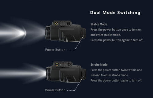3. When in the strobe mode, if strobe mode is not turned off completely by long pressing for 2s, strobe mode will