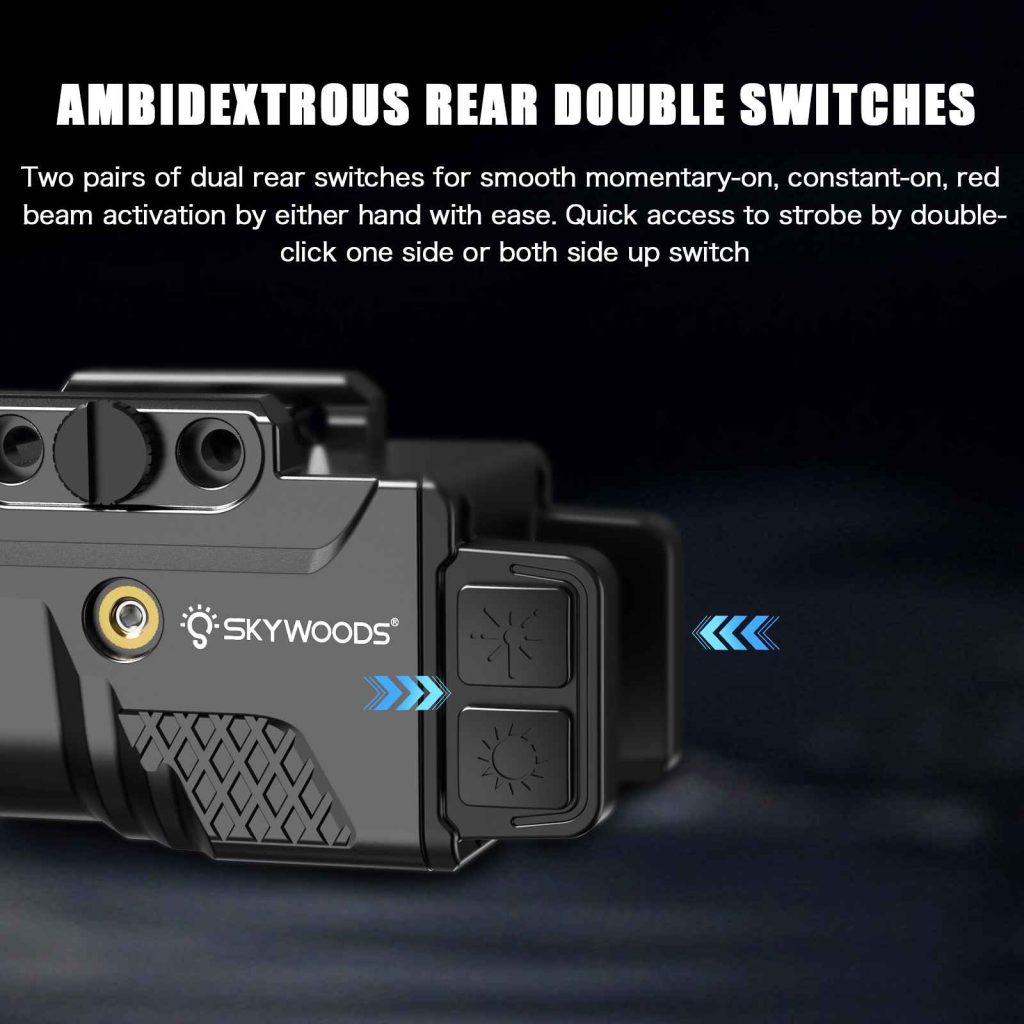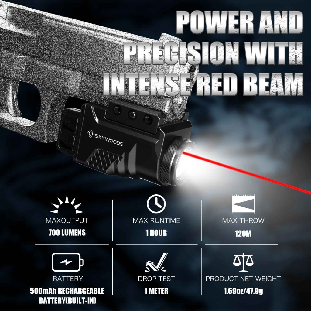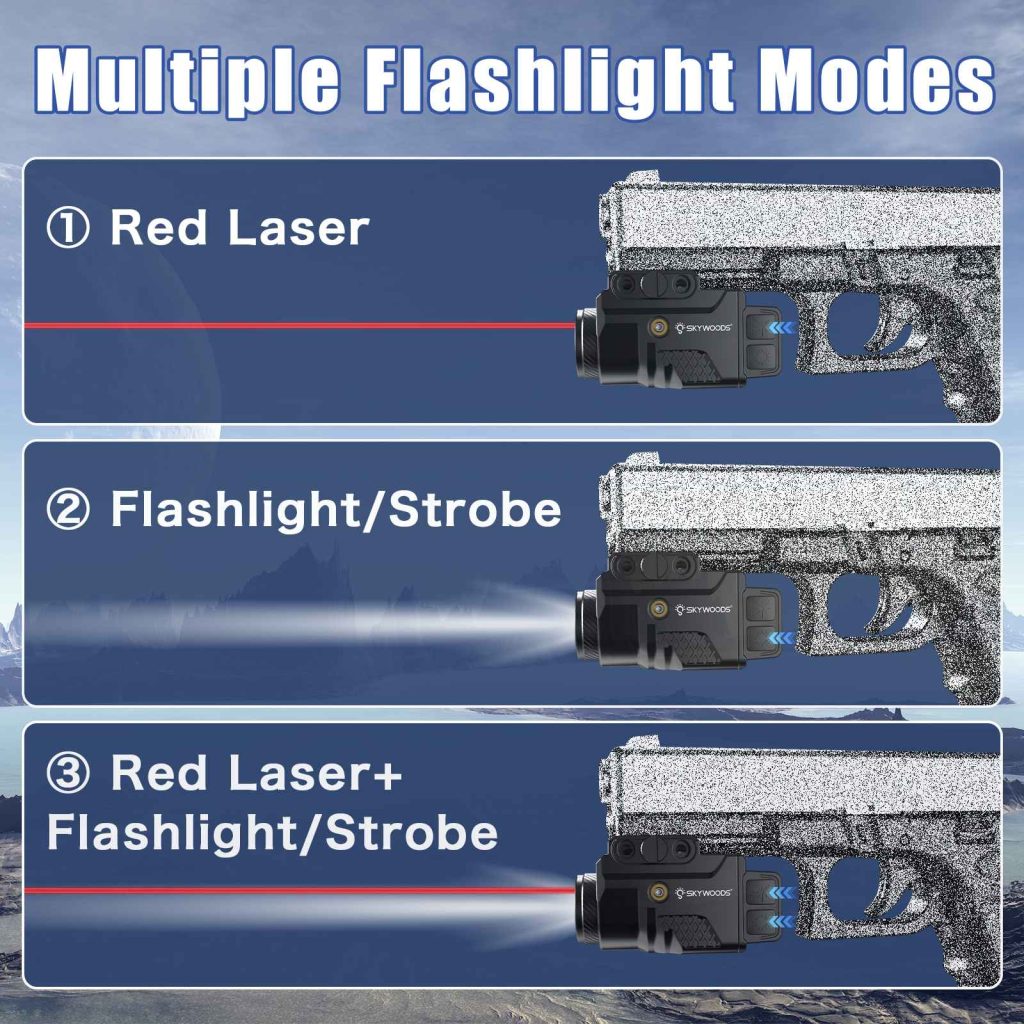 1)Pistol light with built-in laser up to 480 lumens in steady mode.