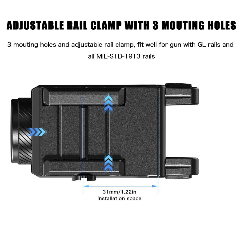 3)3-hole adjustable rail clamp range 2 cm- 2.2 cm. It can be adjusted with the micro screwdriver included in the package.