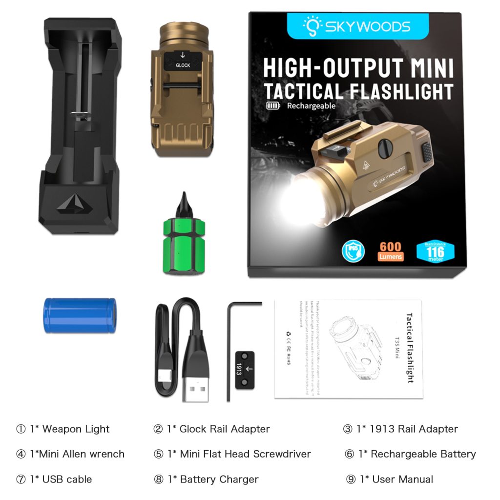 5) Battery: Powered by 1 * 16340 rechargeable battery, 700mAh supports 600 lumen for continuous operation